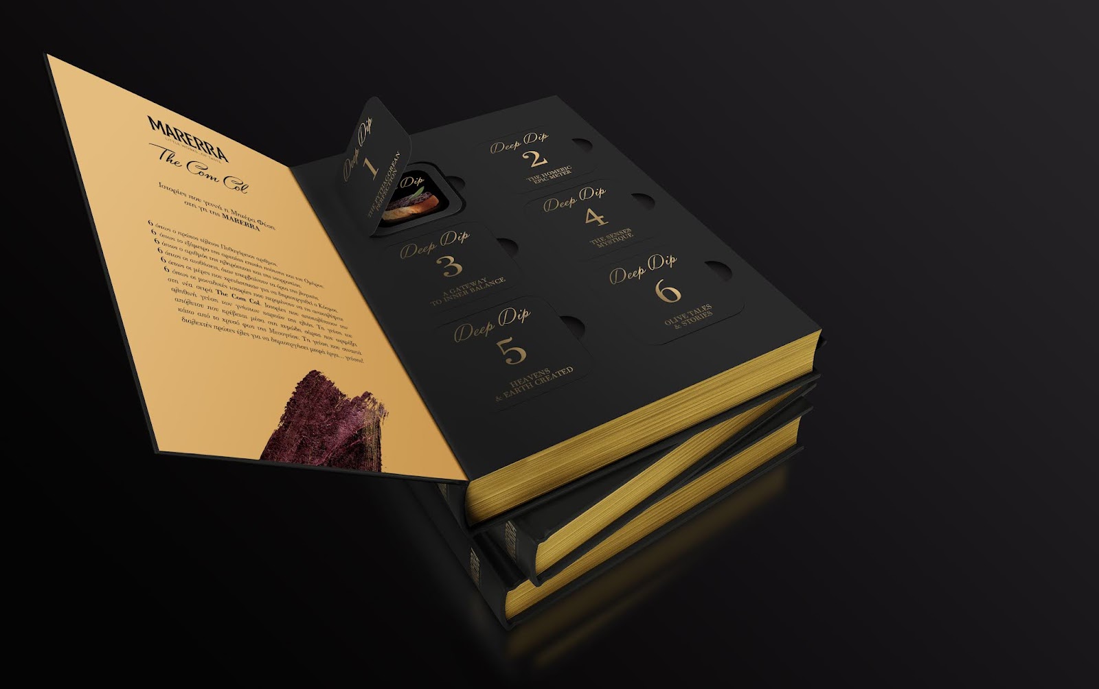 作為一份公司禮品,我們設(shè)計(jì)了一種書籍形式的包裝,其中包含六種不同品種的橄欖醬。橄欖醬包裝以橄欖醬精制產(chǎn)品為特色,以服務(wù)建議書的形式。除了橄欖醬,這本書還講述了馬雷拉哲學(xué)和優(yōu)質(zhì)橄欖。