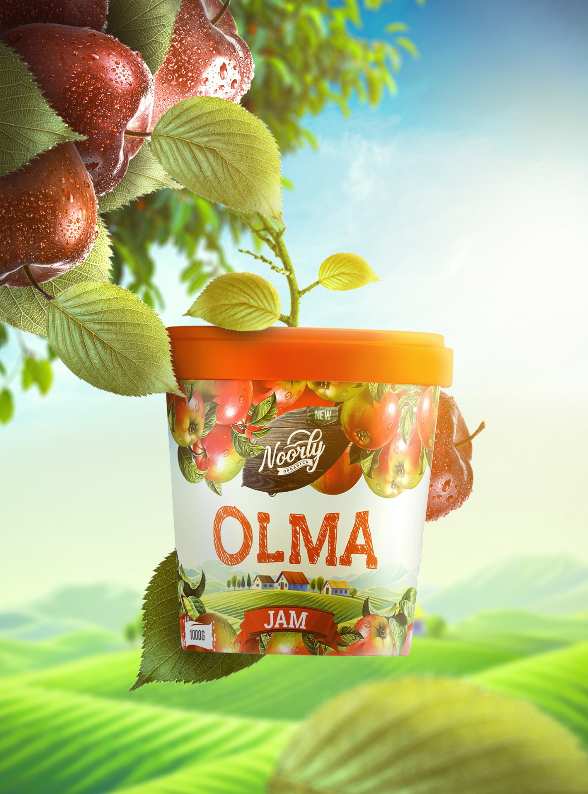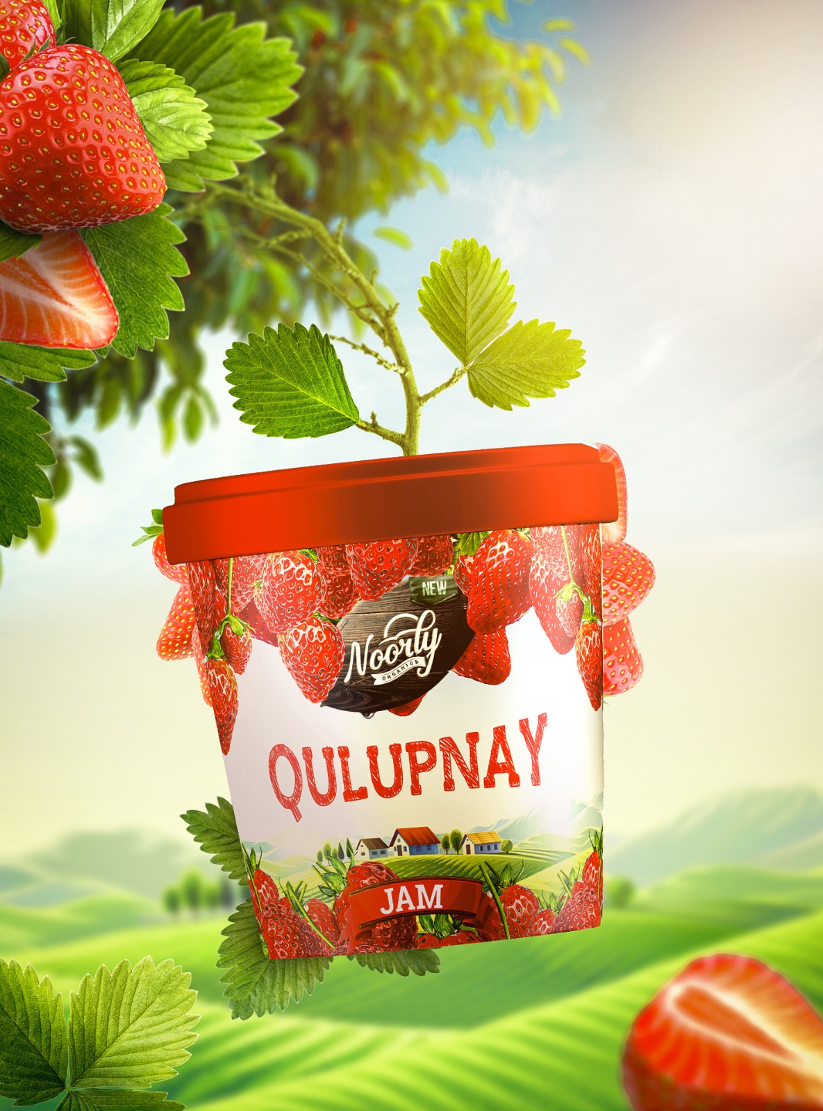 背景上的鄉(xiāng)村房屋由我們的插畫(huà)師完全掌握,并由平面設(shè)計(jì)師修飾。包裝可以適應(yīng)不同的廣告畫(huà)布,如廣告牌、海報(bào)、數(shù)字促銷甚至品牌貼紙。最后但并非最不重要的一個(gè)細(xì)節(jié),我們決定用現(xiàn)代烏茲別克語(yǔ)命名果醬類型,以便當(dāng)?shù)厝丝梢暂p松識(shí)別哪種產(chǎn)品適合他們的口味。