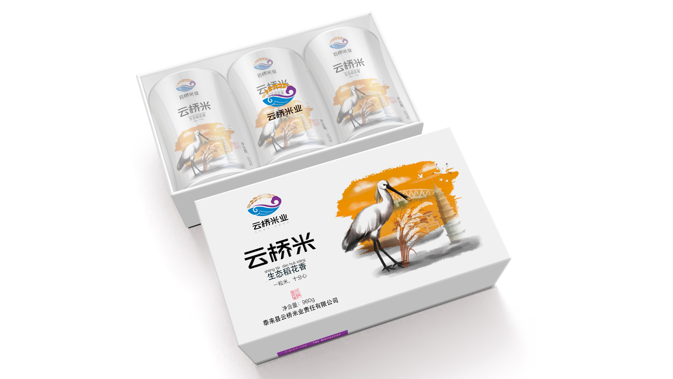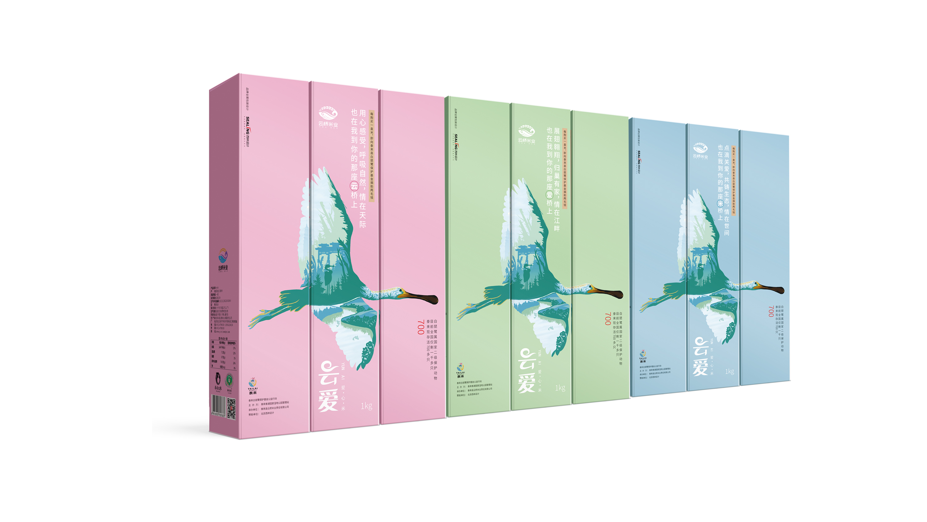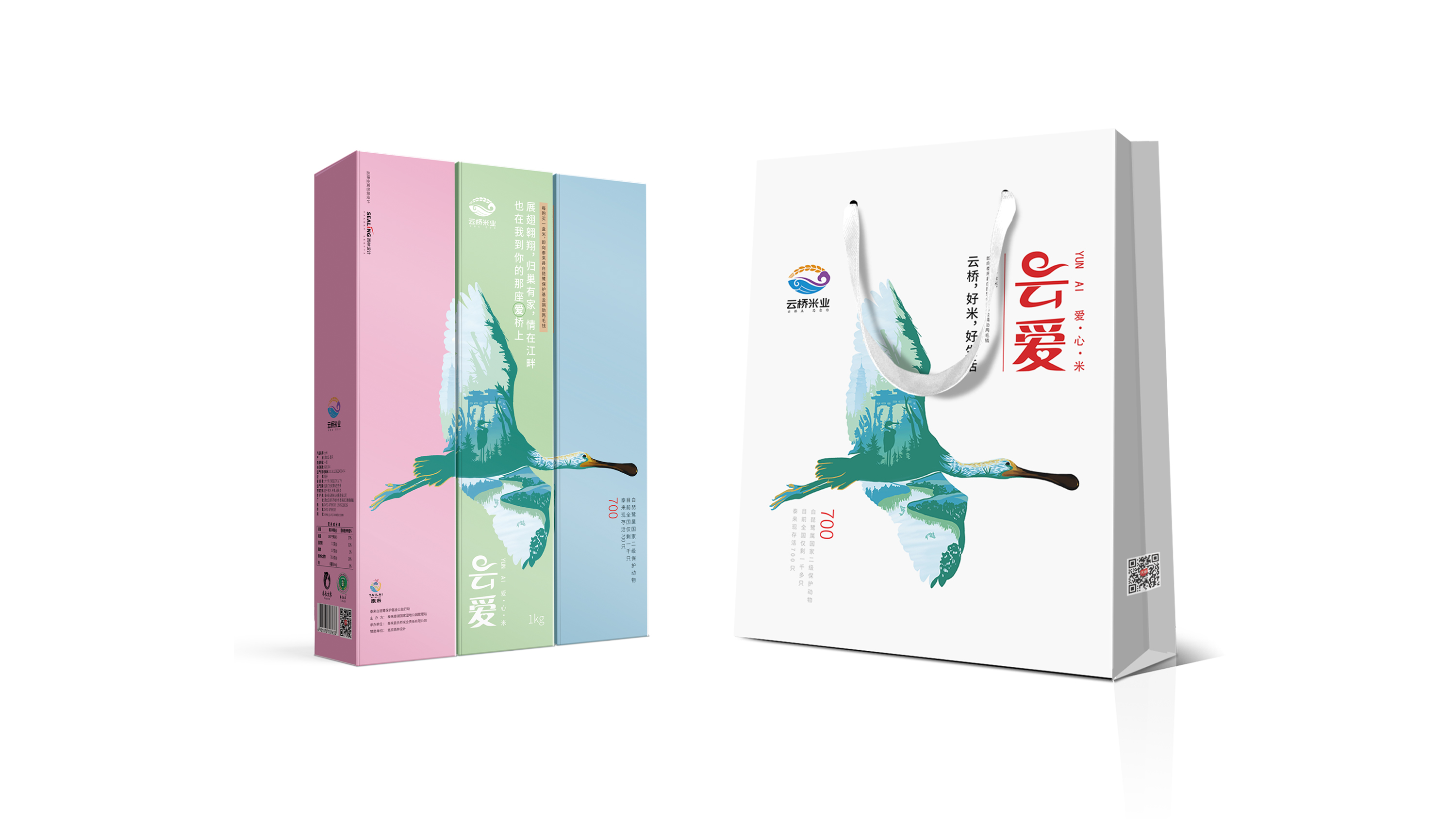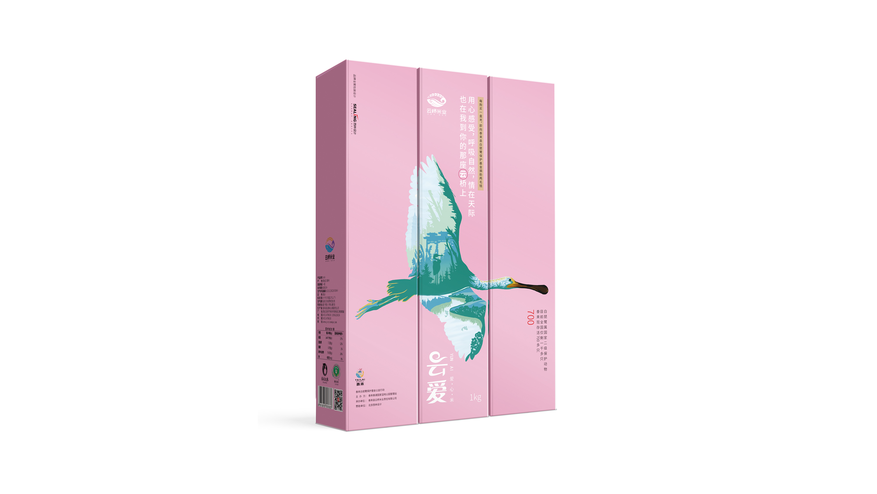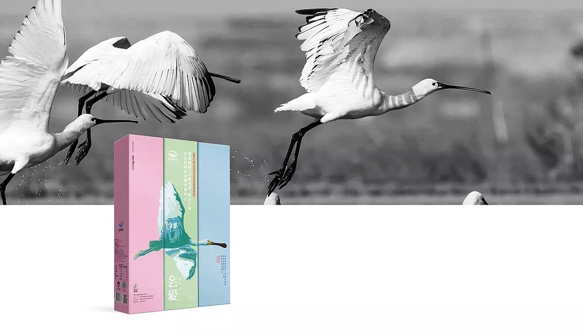整體設(shè)計(jì)創(chuàng)意以展翅飛翔的白琵鷺為主,直接表達(dá)出此款包裝是為“保護(hù)白琵鷺公益活動(dòng)”而設(shè)計(jì),以此傳遞出云橋品牌的情懷所在。