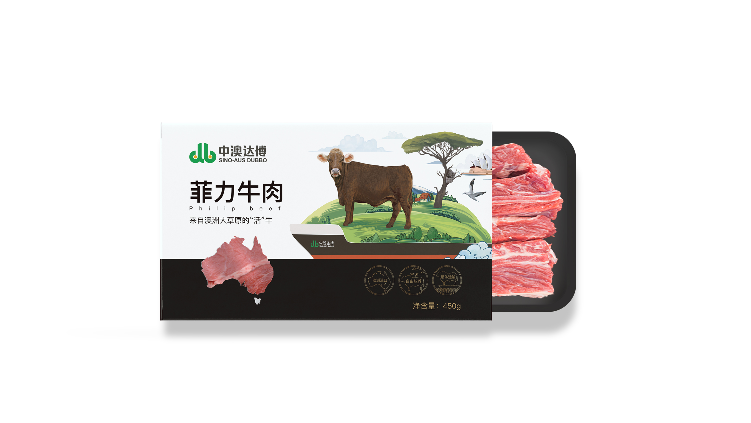 西林設計以此為基點,在創(chuàng)意設計過程中突出中澳達博品牌“鮮”、“一鮮到底”的概念。除了“鮮”,活牛運輸、原畜牧場安全、加工衛(wèi)生、直達餐桌等元素都在包裝設計上應用。