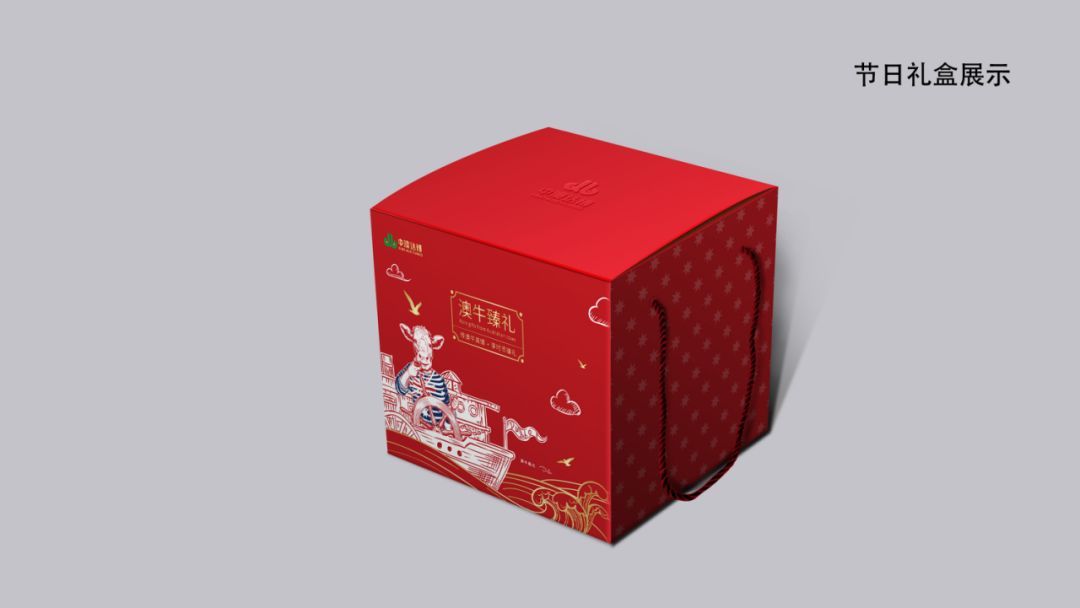 中澳達博包裝設計,采用擬人化,營造產品IP形象為主題,通過對牛的人物化,讓產品本身充滿靈性,再將“安全”、“綠色”、“健康”、“新鮮”等元素融入外包裝中,讓包裝成為無聲銷售員。