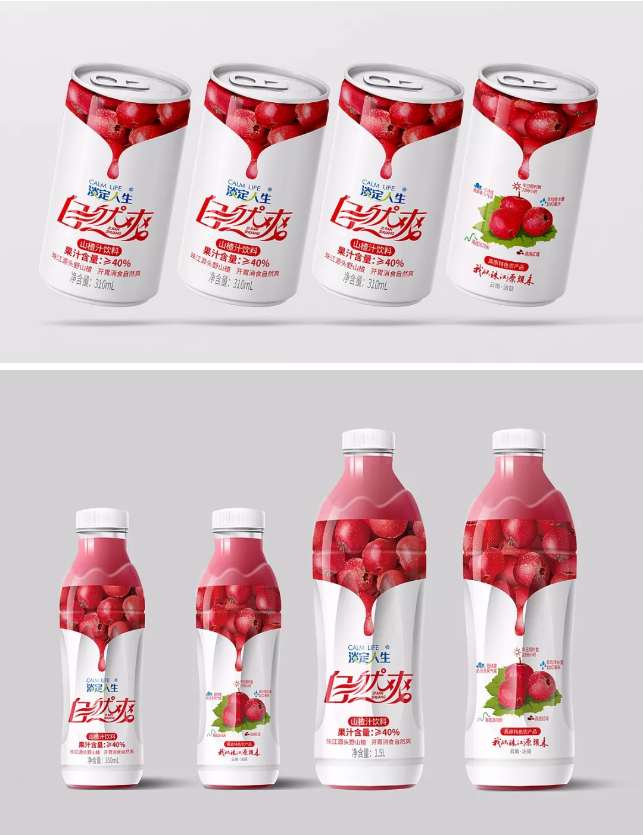 關(guān)于淡定人生·山泉水瓶型設(shè)計(jì)源自淡定人生品牌文化,以中國傳統(tǒng)文化中的太極為原型。自然爽果汁系列,含玉米、山楂、獼猴桃、芒果等,其中玉米汁與山楂汁以上市,其外包裝設(shè)計(jì)采用果實(shí)寫實(shí)手法表達(dá),在透露著果肉誘惑之際,傳遞出“七彩云南”之態(tài)。