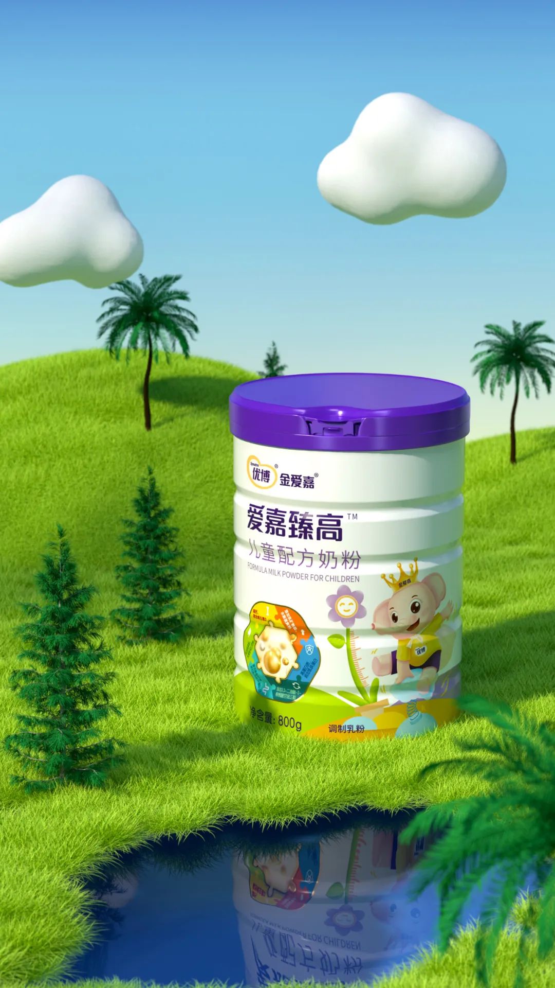 西林設(shè)計為優(yōu)博金愛嘉設(shè)計的系列包裝中,表現(xiàn)風(fēng)格以童真、愛、富有想象力的感受,在視覺元素創(chuàng)意上做到更極親和力、有故事性,讓兒童配方奶粉包裝帶來更好的體驗感。