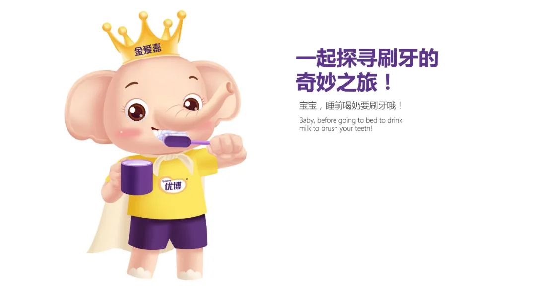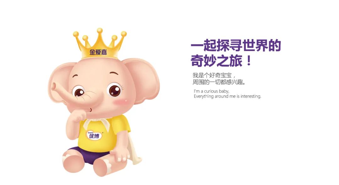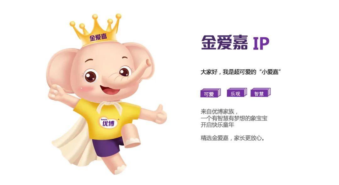 優(yōu)博22年以來(lái),“優(yōu)博紫”的色彩早已深入到每一位寶媽們的心中,也是優(yōu)博的優(yōu)質(zhì)的品牌視覺(jué)資產(chǎn),另外還有一個(gè)重要的角色,就是優(yōu)博多年以來(lái)一直用小象做為與消費(fèi)者溝通的卡通IP形象。優(yōu)博金愛(ài)嘉之前還專門設(shè)計(jì)了金愛(ài)嘉小象,值得一提的是西林設(shè)計(jì)在審查原IP形象后,做了許多細(xì)節(jié)的優(yōu)化提升。