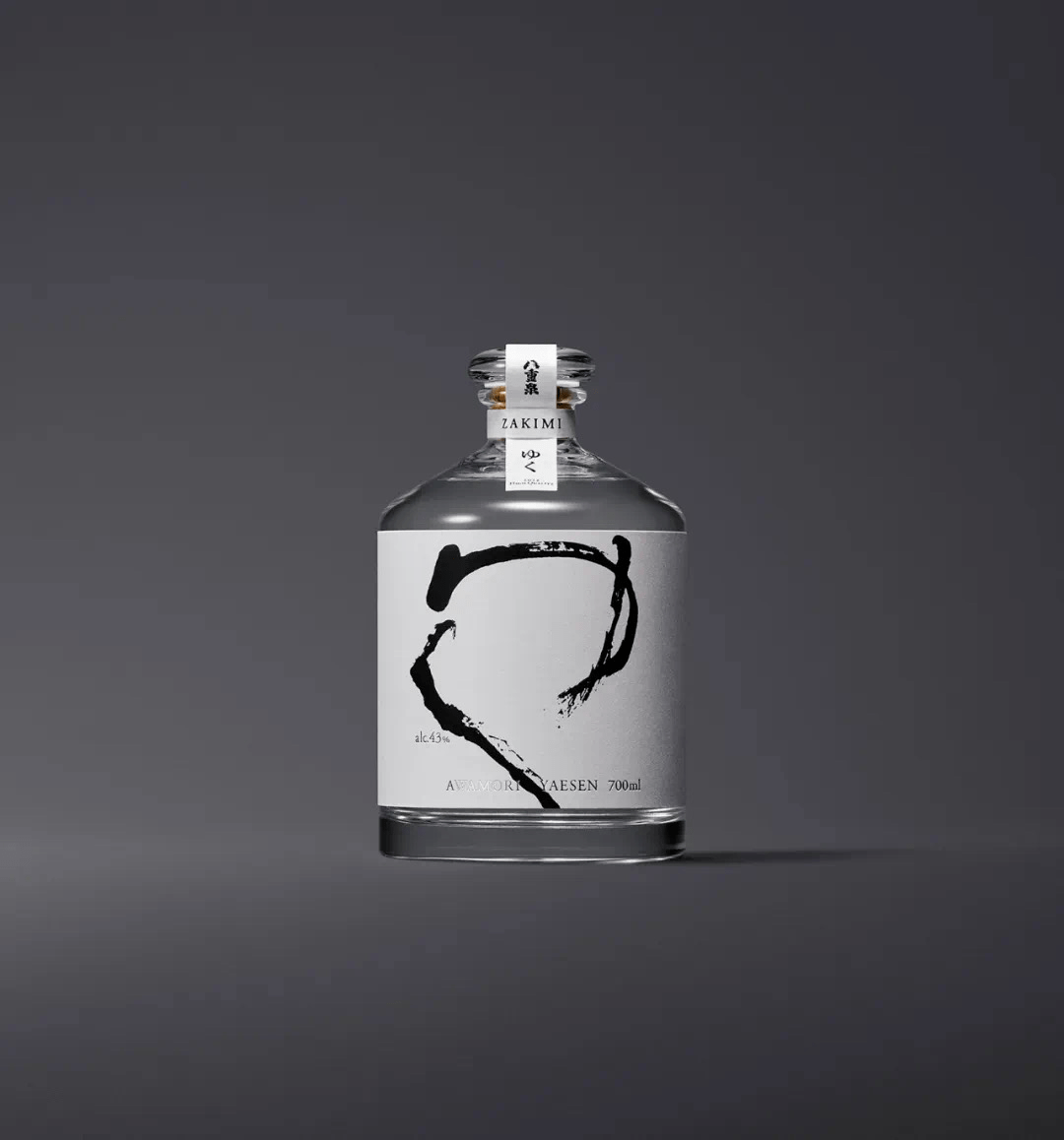 瓶貼的設(shè)計以干凈簡潔的純白色為底,通過抽象的書法筆畫呈現(xiàn)“ゆく”的視覺符號。瓶蓋處也是直接簡潔的形式展示名稱信息,其中主品牌名“ZAKIMI”只是采用了灰色為底來突出。