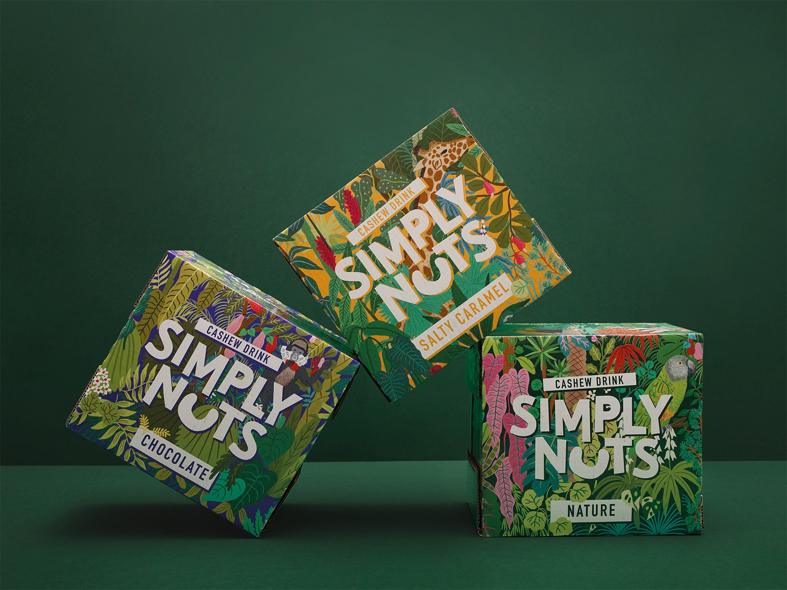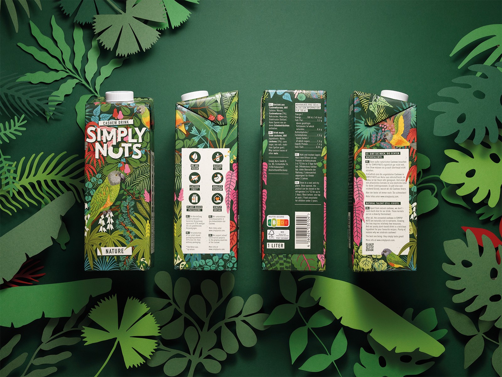 市場上充斥著提供牛奶替代品的品牌。如果一家初創(chuàng)企業(yè)不脫穎而出,它就很難有所作為。 Simply Nuts 是腰果奶品牌,擁有“德國腰果比例最高”。Simply Design 與 Studio Oeding 接洽,“根據(jù)深入的市場和設(shè)計(jì)分析,在牛奶替代品領(lǐng)域開發(fā)一個(gè)新的消費(fèi)品牌?!?/em>腰果飲料產(chǎn)品系列由三個(gè)品種組成,于去年秋季率先在德國快速消費(fèi)品市場推出。包裝設(shè)計(jì)應(yīng)將品牌和產(chǎn)品概念形象化,并在市場和立場上形成明顯的差異化出去?!?/em>