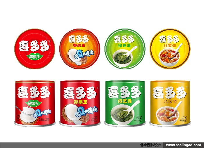 嚴謹?shù)漠a(chǎn)品線架構(gòu)梳理,使整個產(chǎn)品系列形成大統(tǒng)一小區(qū)格,簡約中突出了喜多多品牌logo的同時,強化了品類和產(chǎn)品信息。極具視覺沖擊力和精致美味的感受