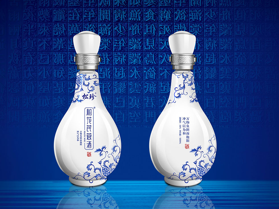 項(xiàng)目背景:“善補(bǔ)陽者,必于陰中求陽,則陽得陰助而生化無窮;善補(bǔ)陰者,必于陽中求陰,則陰得陽生而泉源不竭?!彼苫ㄜ稳鼐?、松花杞黃酒包裝設(shè)計(jì)以太極為基礎(chǔ)概念,考慮融合太極、乾坤理念,單品可以銷售,兩瓶酒相聚亦可形成乾坤禮盒。