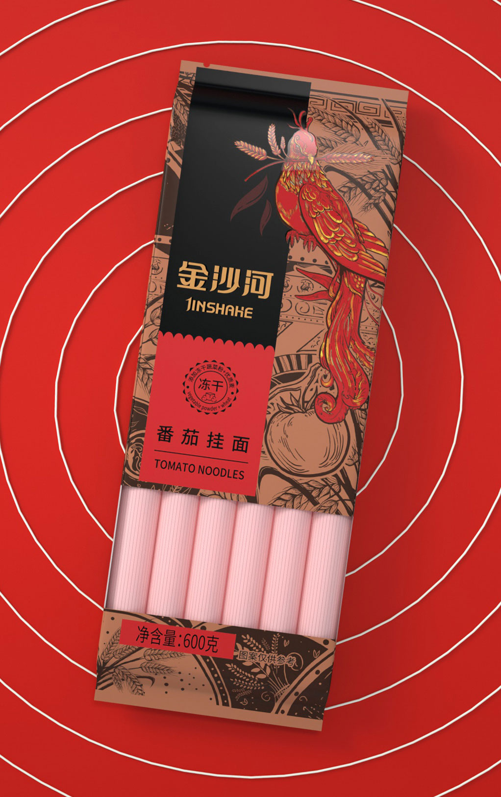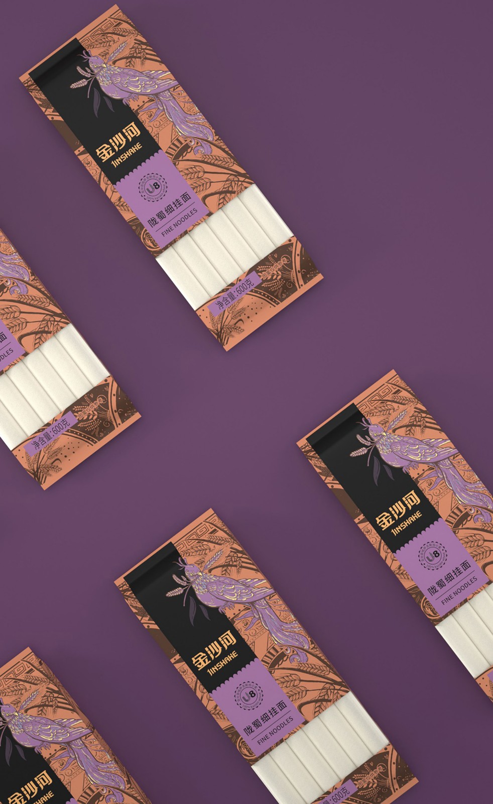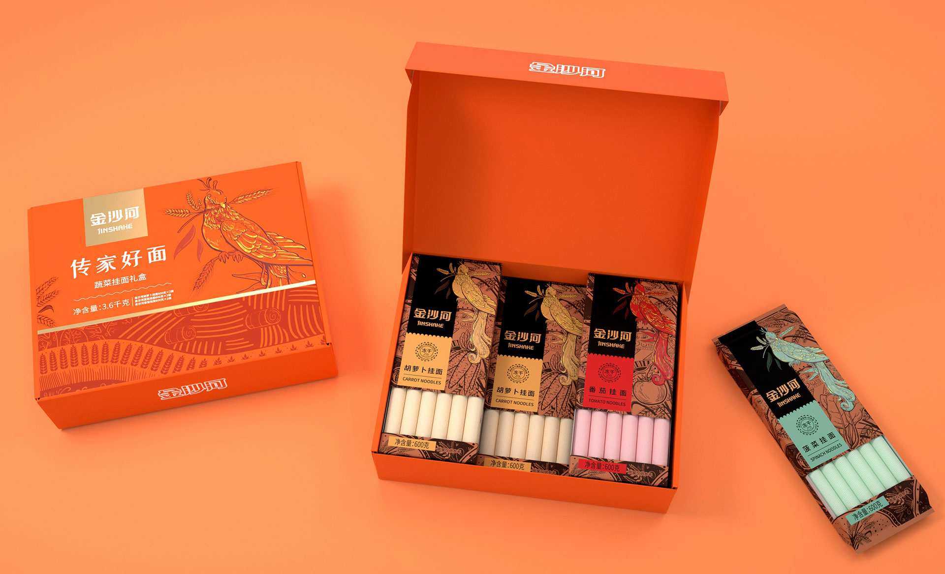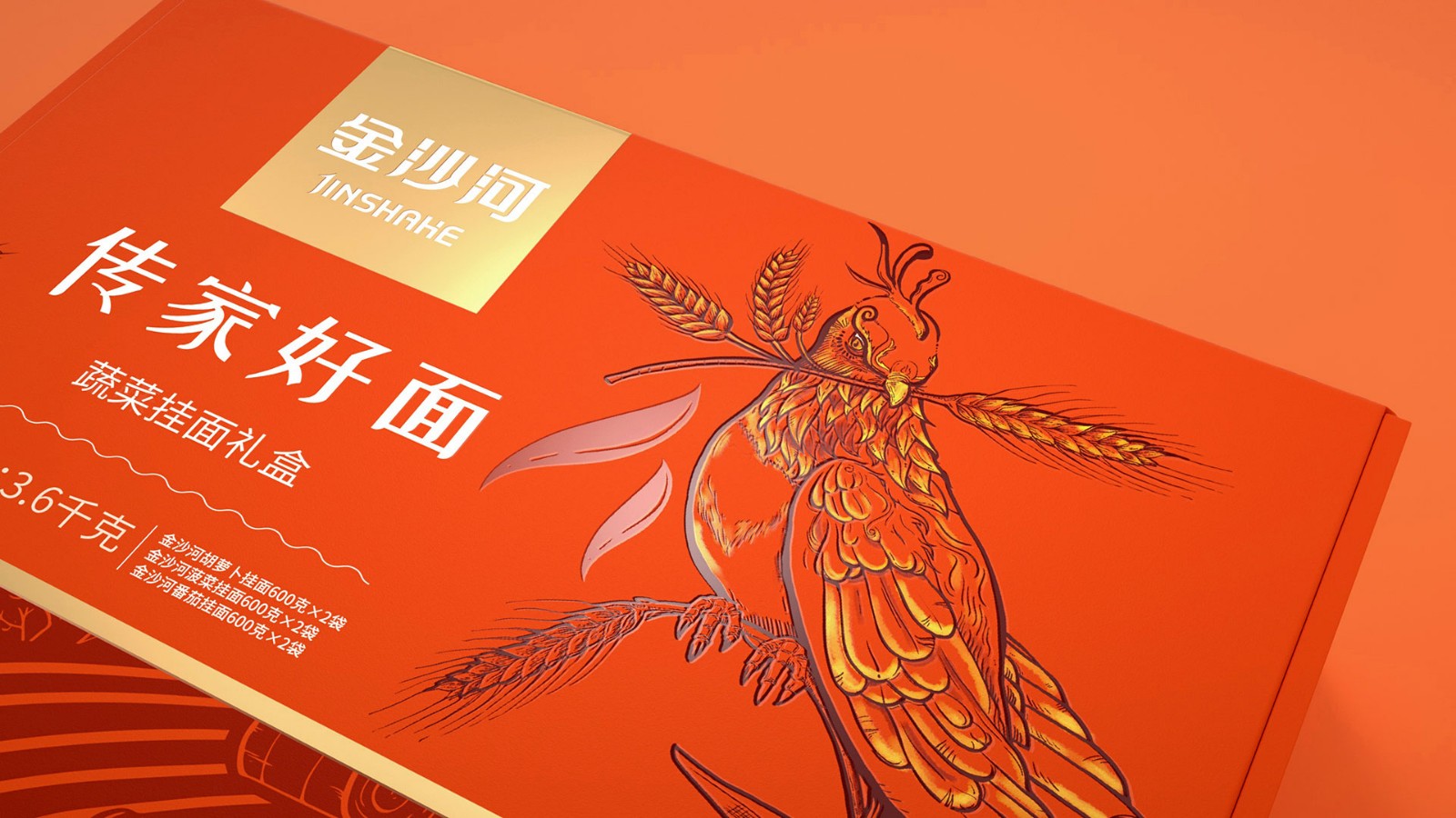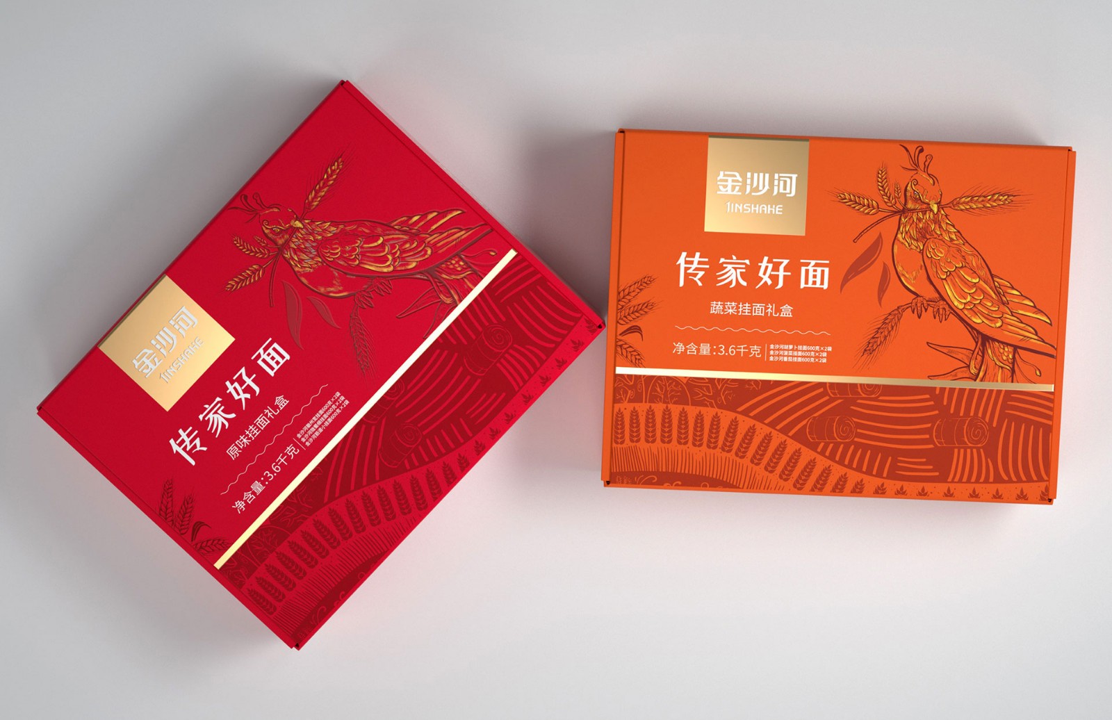 金沙河掛面包裝根據(jù)口感用多色彩展示豐富包裝色彩