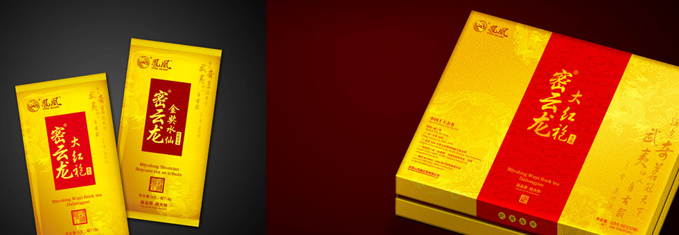 項目背景:紅色與金色的交叉運用,顯示出禮盒喜慶、尊貴的氣質(zhì);中式團型與云型手繪圖案的運用,彰顯了中式古典情懷。鳳凰密云龍茶葉,屬武夷茶中極品,以此精致禮盒襯托,當之無愧。