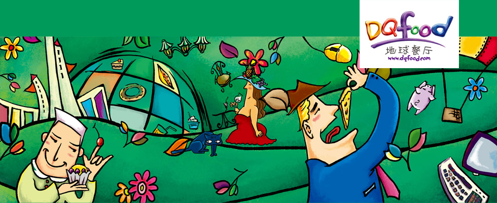 此標(biāo)志以地球的刨面為支點(diǎn),寓意地球餐廳強(qiáng)大的營銷網(wǎng)點(diǎn),DQFOOD是地球餐廳的英文縮寫,豐富的色彩分別代表了地球餐廳經(jīng)營的食物種類之多及綠色、健康、熱情歡樂的經(jīng)營理念。標(biāo)志整體造型自然生動,色彩豐富。具有很強(qiáng)的視覺沖擊力。