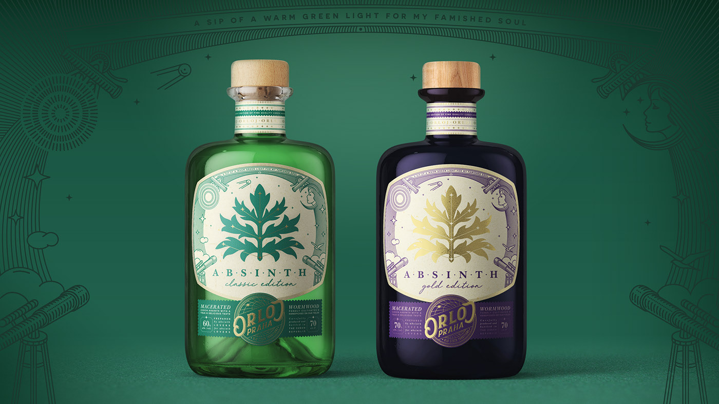 任務:為傳統(tǒng)的捷克苦艾酒開發(fā)標簽設計。捷克共和國是一個眾所周知的苦艾生產國,這不是什么秘密。每年都有很多游客來這里品嘗各種神秘飲料。布拉格,捷克共和國的首都,以一種中世紀的天文鐘而聞名于世,名為Orloj。這只鐘于1410年首次安裝,使它成為世界上第三座最古老的天文鐘.去年,兩家酒精生產商決定合作制作一款新的高質量版的苦艾酒。他們采用了一種傳統(tǒng)的捷克苦艾汁配方,并將其與首都的象征相結合,并出現(xiàn)了新的天文苦艾酒,名為“Orloj”。它決定制作兩種版本的飲料:經典(浸漬)和金色(蒸餾)一。我的任務是創(chuàng)建一個產品的標志,標簽設計和產品的基本視覺標識。