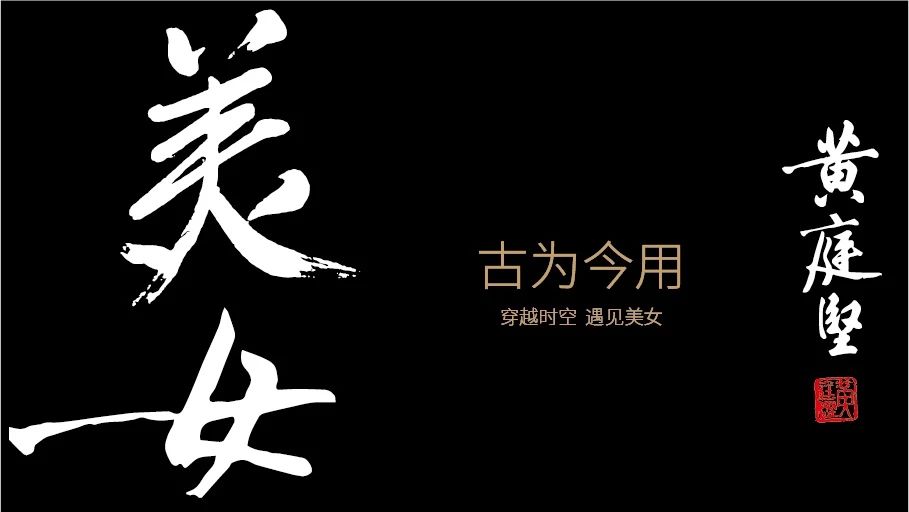 “詩書雙絕”的黃庭堅,在故鄉(xiāng)修水,留下不少書法碑刻,他的行書,遒勁有力,結(jié)體嚴(yán)謹(jǐn),舒展夸張,真的耐讀耐看,獨(dú)成風(fēng)格。在設(shè)計之初,就想到與老祖宗互動一下,穿越時空,共話美女。