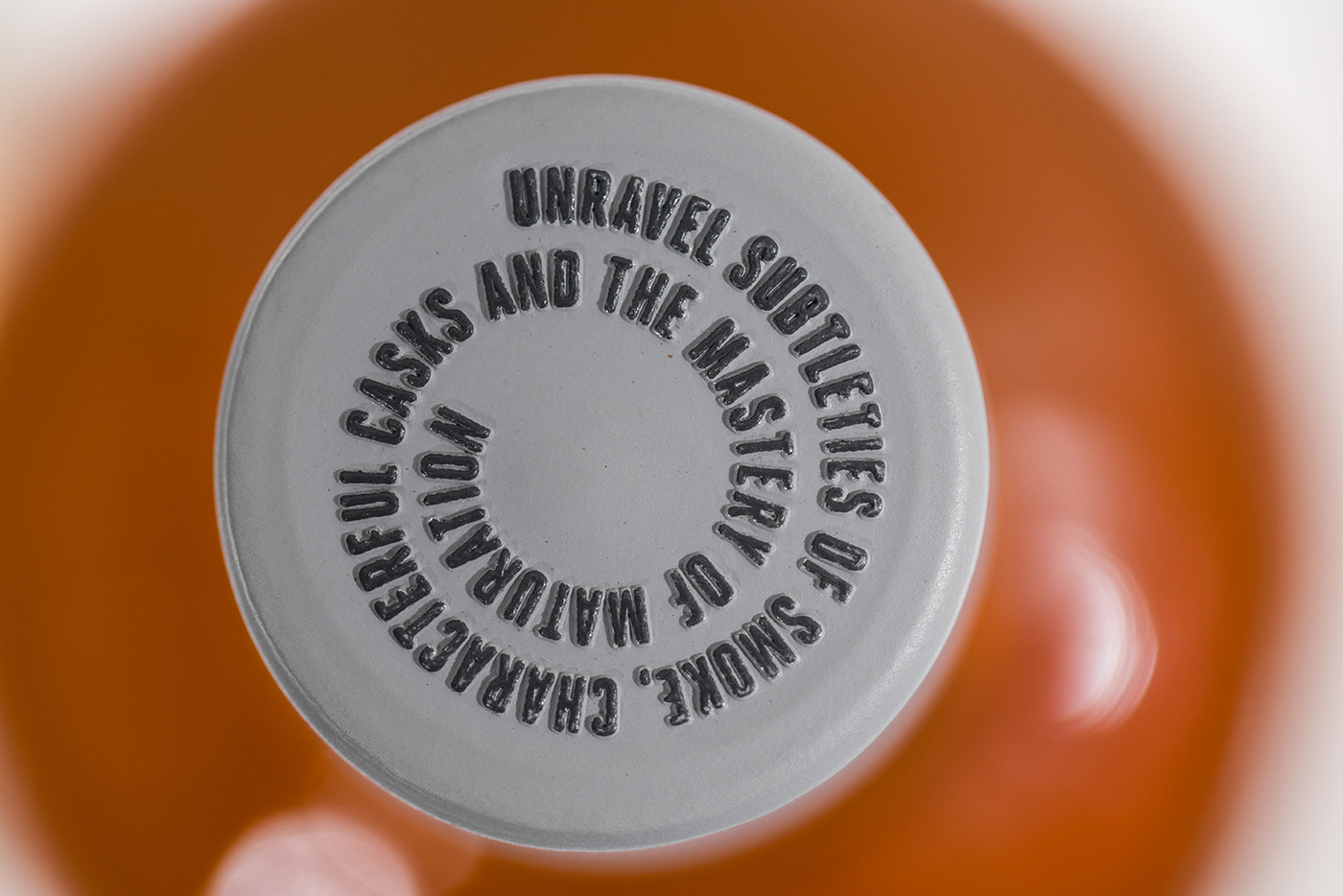 我們定制的多層瓶子的靈感來自交織在一起的各種力量,以解開不尋常的事物:微妙的煙熏味和令人驚奇的甜味;精心準(zhǔn)備和不可預(yù)測的性質(zhì);輕輕地ated大麥和不尋常的酒桶。有機(jī)的彎曲標(biāo)簽暗示一縷煙,而紙張的斑點(diǎn)紋理是通過拍攝泥炭顆粒而產(chǎn)生的。
