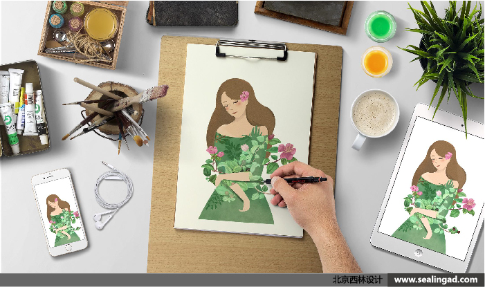 插畫(huà)采用水彩風(fēng)格,通過(guò)人物與植物自然親近的結(jié)合,傳達(dá)出舒適、健康、自然的視覺(jué)形象。