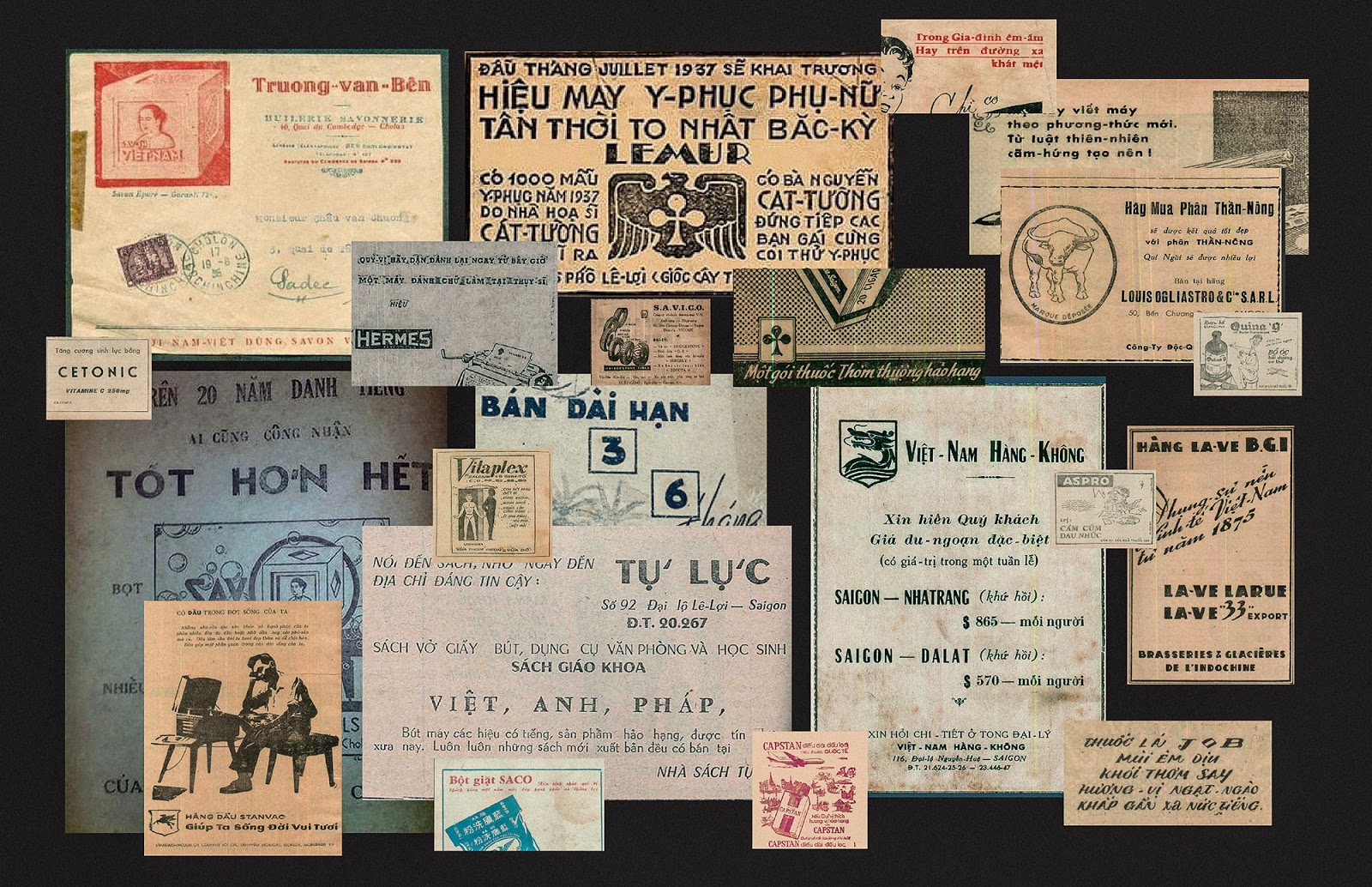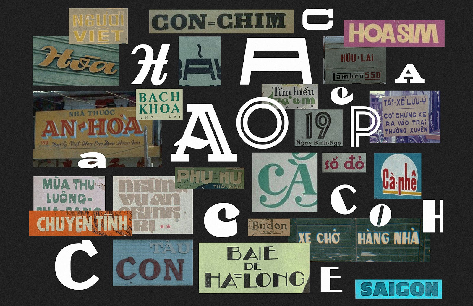 Our design process is the journey back to the past to collect and resurrect the most popular and outstanding typefaces lasting in Saigon before 1975. We were so eager to discover individual letters from the internet, documents, books, magazines, old store banners, and archived resources. This primary research prepares a diverse collection of typefaces, ready for our experiments and exploration.