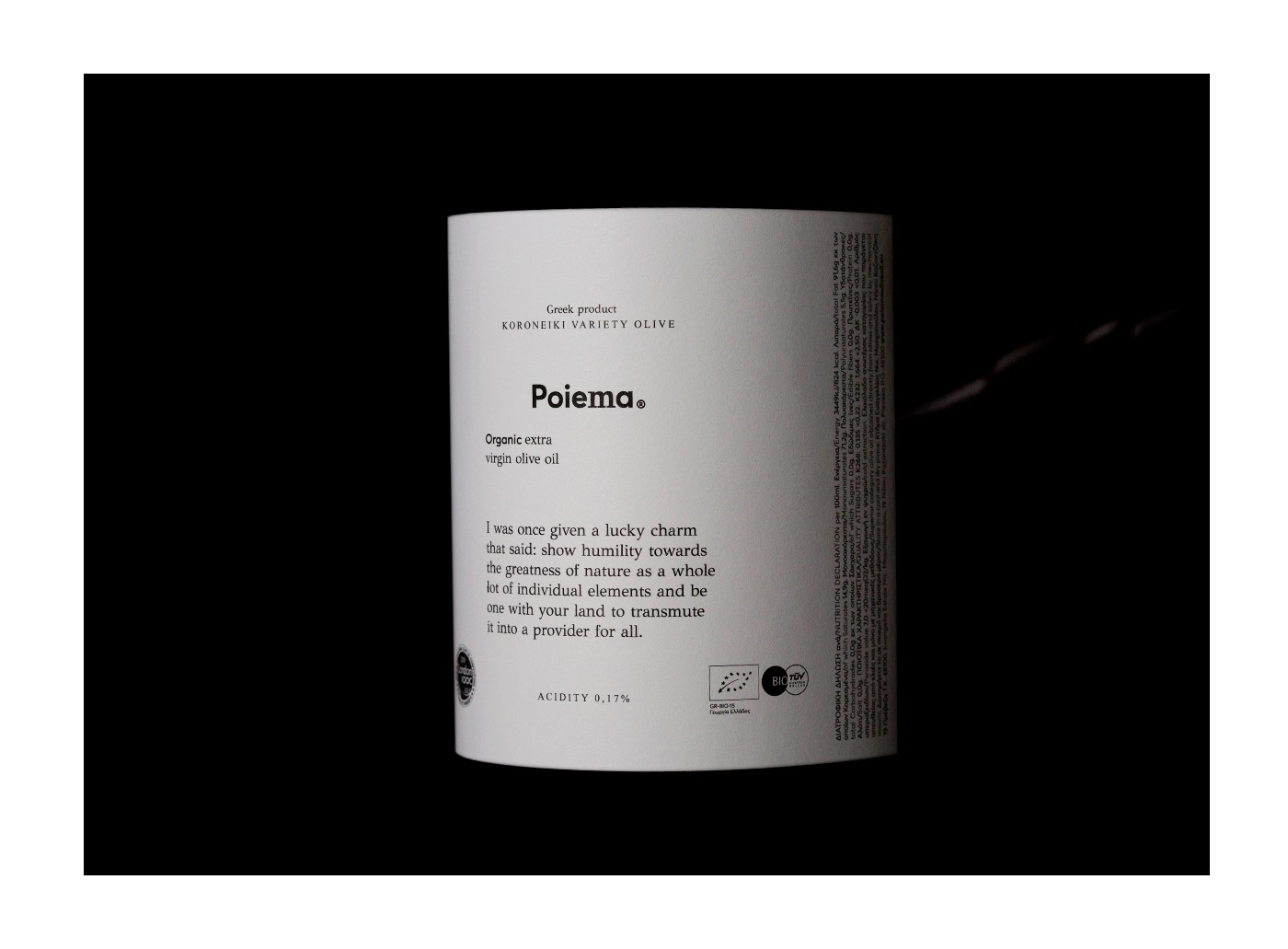 來(lái)自希臘埃塔伊魯斯阿爾塔的Poiema有機(jī)特級(jí)初榨橄欖油。100%有機(jī)優(yōu)質(zhì)橄欖油的包裝設(shè)計(jì)和命名,為牧師和有機(jī)農(nóng)Vassilis Roussas提供限量版。任務(wù)是將他的有機(jī)耕作哲學(xué)烙印到包裝中。我們從種植者的努力中汲取了靈感,我們很榮幸將他的理念和價(jià)值觀融入設(shè)計(jì)過(guò)程中。該名稱是作為這種制作行為的參考。
