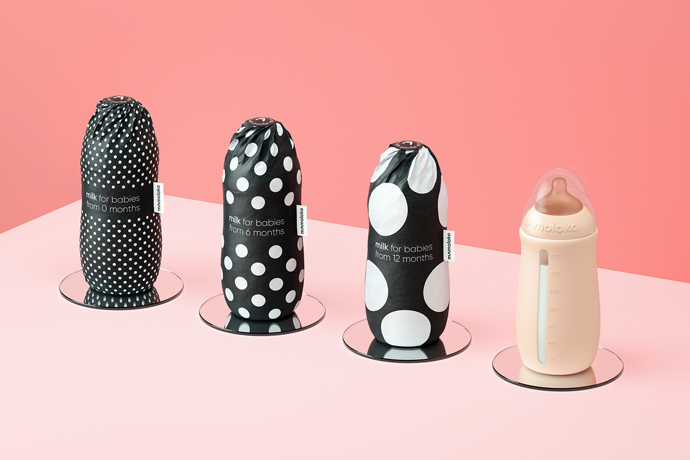 品牌系列包括三種產(chǎn)品。它們的成分不同,適用于不同的年齡:從出生,六個(gè)月到一年。該產(chǎn)品的優(yōu)點(diǎn)是可以瓶裝出售,可以重復(fù)使用,有助于改善環(huán)境。該瓶子根據(jù)圖紙?jiān)O(shè)計(jì)。啞光米色表面保護(hù)著瓶子內(nèi)的物品。瓶子有一個(gè)刻度尺和一個(gè)窗口,通過該窗口可以看到產(chǎn)品。視覺上的想法是,用于喂養(yǎng)的瓶子象征著女性的乳房,而包裝紙則象征著衣物。豌豆圖案被用作基礎(chǔ),是女性衣柜中最知名的圖案。豌豆是產(chǎn)品的另一特性:豌豆的大小取決于嬰兒的年齡。