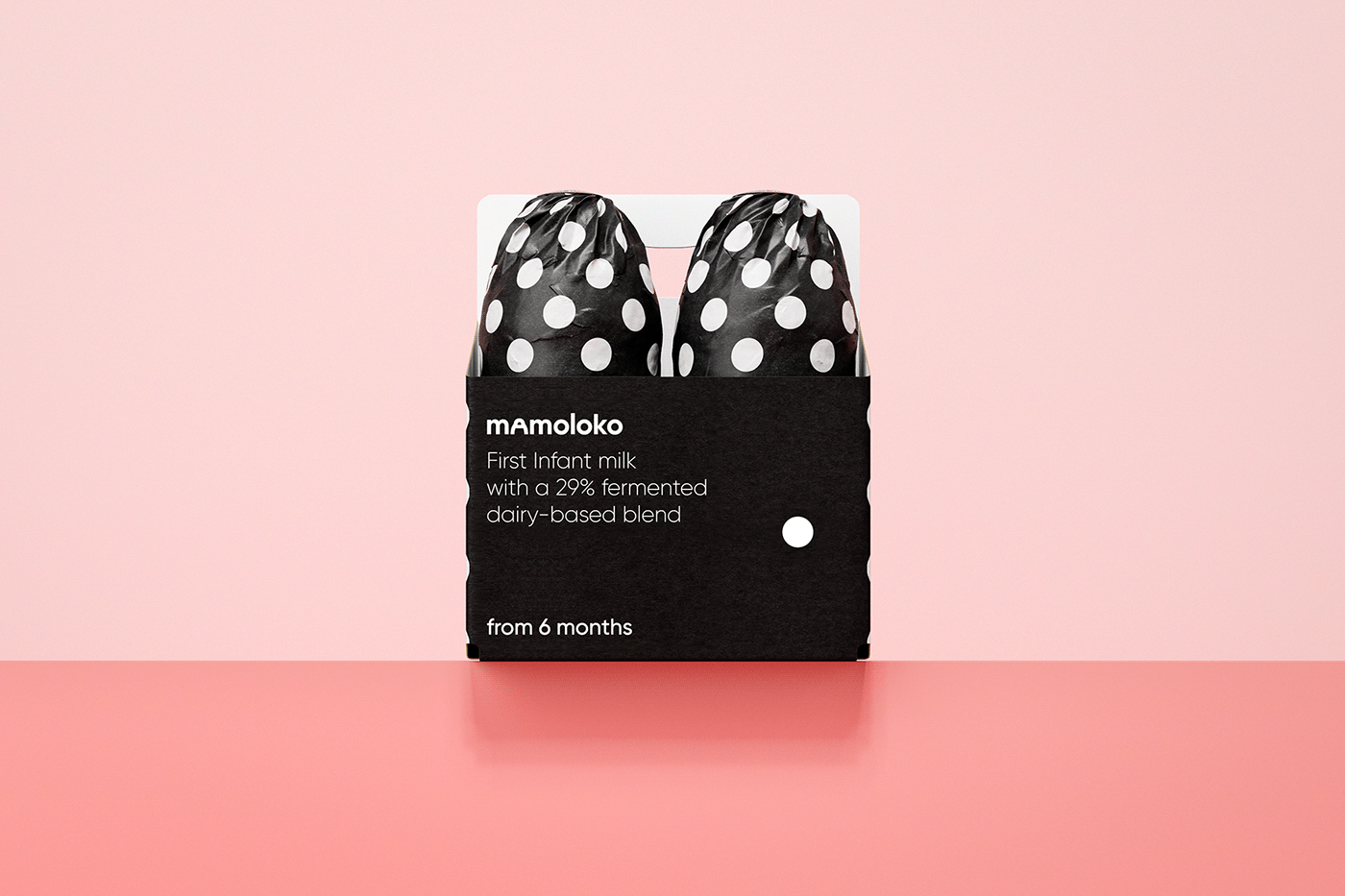 Mamoloko是為年輕現(xiàn)代女性設(shè)計(jì)的牛奶配方。該包裝看起來像是時(shí)尚的配飾,是年輕母親形象的補(bǔ)充。黑白伽瑪與一頭母牛有關(guān)。這樣的包裝將在貨架上的其他乳制品中脫穎而出,并且,最重要的是,母親們將很高興看到這種產(chǎn)品。