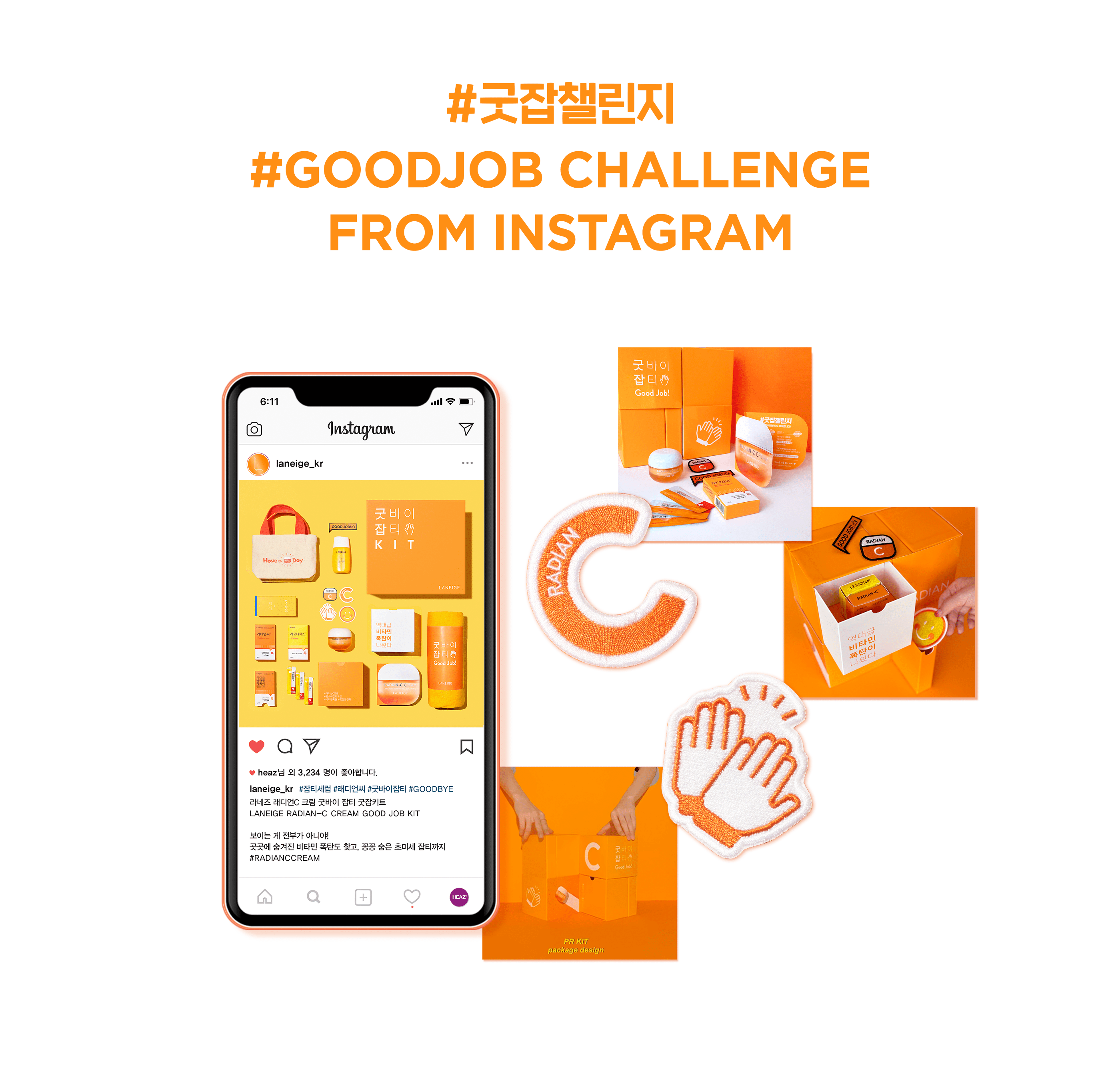 LANEIGE已發(fā)布新產(chǎn)品RADIAN-C CREAM,并已通過影響者認(rèn)證產(chǎn)品評(píng)論,并在Instagram舉辦了“ Good Job Challenge”。我們設(shè)計(jì)了該套件,以提供給成功完成挑戰(zhàn)的人。