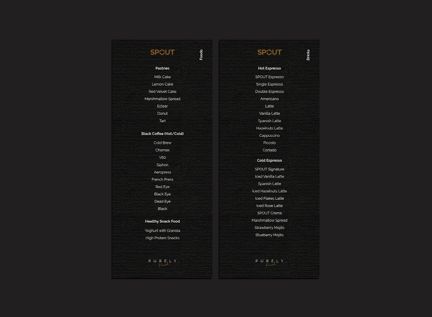 Spout是一家專業(yè)咖啡店,生產(chǎn)優(yōu)質(zhì)咖啡飲料。在這個(gè)項(xiàng)目中,設(shè)計(jì)師希望通過使用黑色和金色色調(diào)來強(qiáng)調(diào)奢華和上乘的咖啡。以減簡(jiǎn)而大膽的字體來支持這些因素。徽標(biāo)中“ O”這個(gè)概念的名稱含義啟發(fā)了我們。