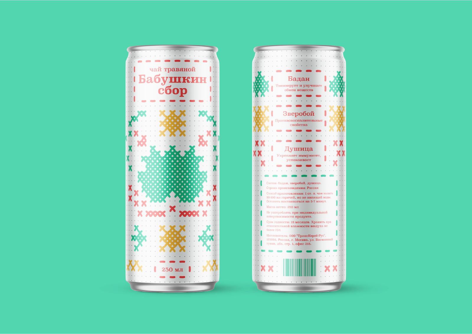 “祖母的收藏”是一個冰茶品牌。對于現(xiàn)代人來說,這是一種飲料,他們想念與祖母在村子里度過的童年,并想再次品嘗她釀造的芬芳的涼茶。設(shè)計靈感來自我們祖母繡的十字繡和圖案。