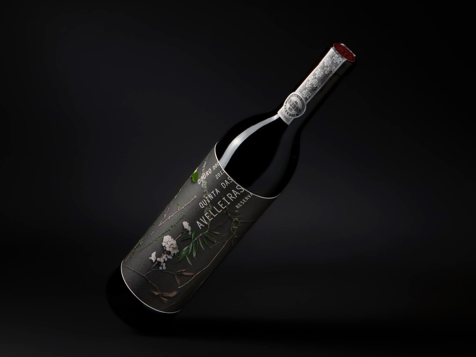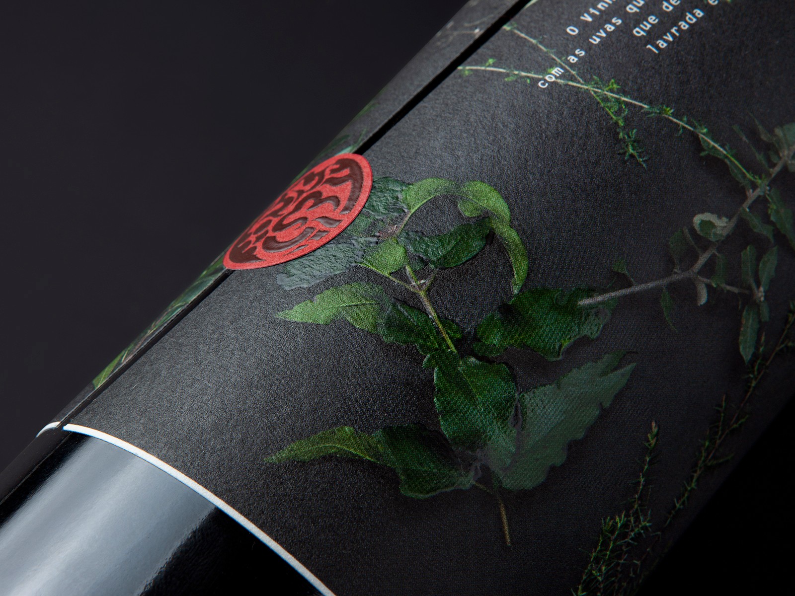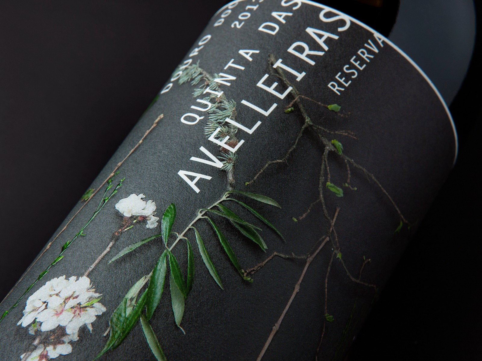 與標(biāo)簽的傾斜切口的角度平行設(shè)置的傾斜文本從上帶向下流到下帶,從而創(chuàng)建了一個(gè)框架,使圖形元素可以呼吸。圖紙的嚴(yán)格程度,膠版印刷(CMYK),面漆的應(yīng)用-保留的啞光清漆和高浮雕-以及紙張的選擇(Arconvert Cotone Bianco)都產(chǎn)生了標(biāo)簽,可以通過增加價(jià)值來提高產(chǎn)品質(zhì)量到Quinta das Avelleiras Reserva Douro包裝。