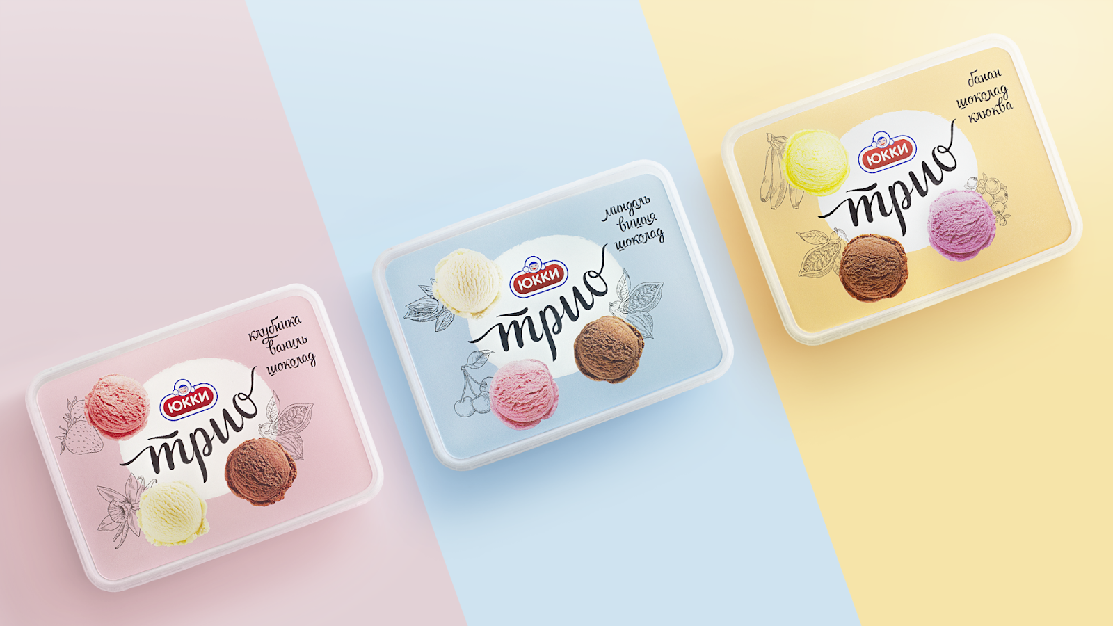 標簽:Трио Юкки冰淇淋包裝設(shè)計 三合一 口味統(tǒng)一 鉛筆素描風格 味覺標記 手寫的字母 現(xiàn)代感 精致感 冰淇淋生產(chǎn)線 情感視覺領(lǐng)域 口味和愉悅結(jié)合 包裝設(shè)計 解決方案 品牌產(chǎn)品包裝設(shè)計公司
