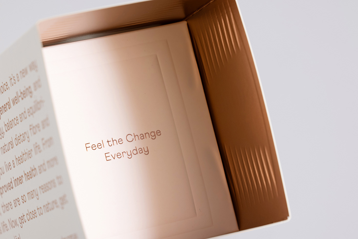 如何表達(dá)健康與美麗?這種包裝設(shè)計(jì)的整體輕盈清新的外觀(guān)回答了這個(gè)問(wèn)題,通過(guò)包裝上的壓花技術(shù)將盒子內(nèi)的香包形象化,圖案以不同的角度出現(xiàn)/消失,這代表了你將在短短30天內(nèi)經(jīng)歷的變化。