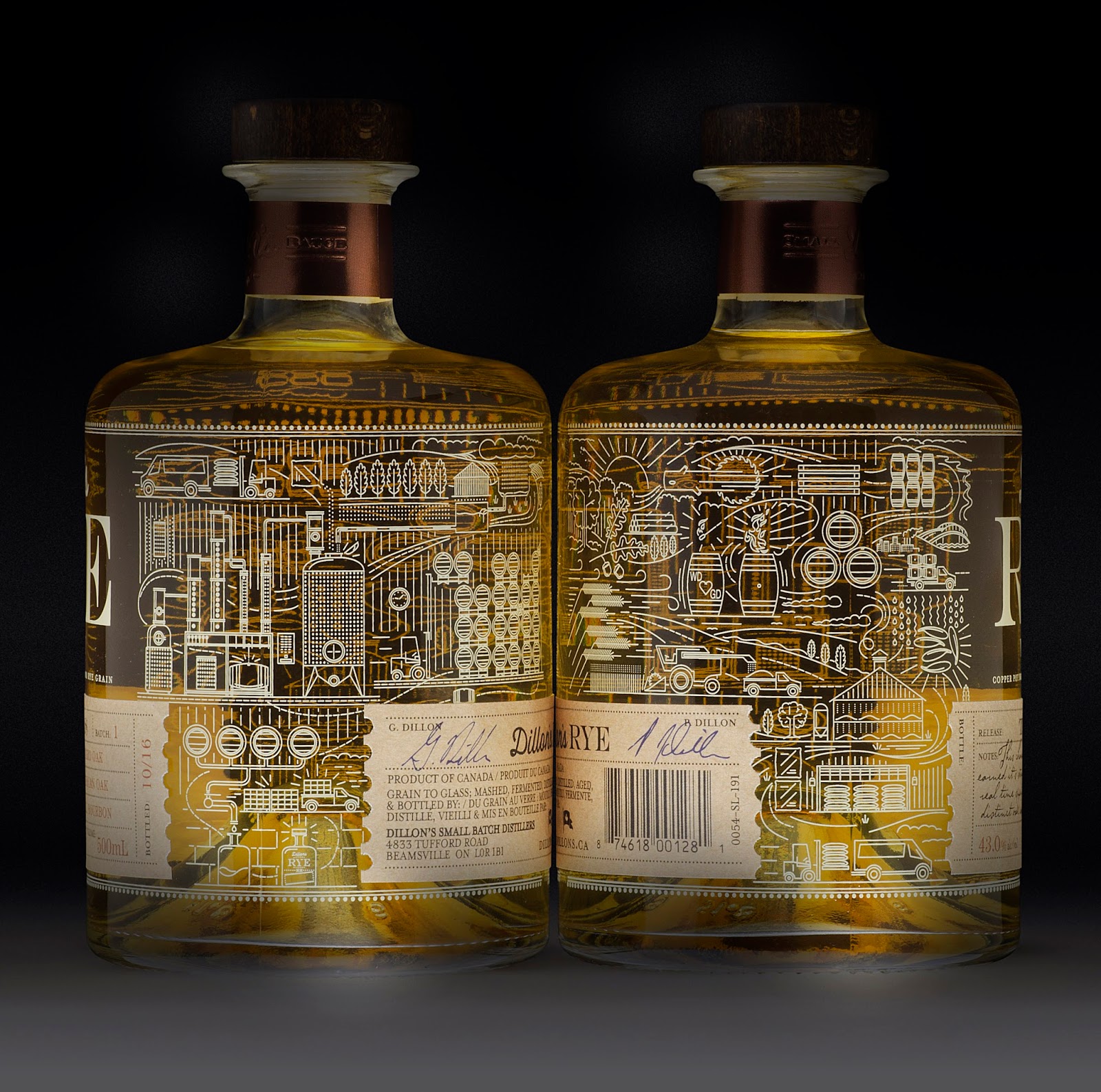 這種超高級(jí)類別的包裝設(shè)計(jì)需要講述這個(gè)故事,以及狄龍如何制造出這種新的加拿大威士忌,同時(shí)還使觀眾參與真正黑麥的制作工藝,例如黑麥谷物,制粉,制麥芽,搗碎,蒸餾銅和橡木桶中的陳釀-全部在加拿大安大略省使用,僅次于所用3棵橡木中的加拿大橡木桶。