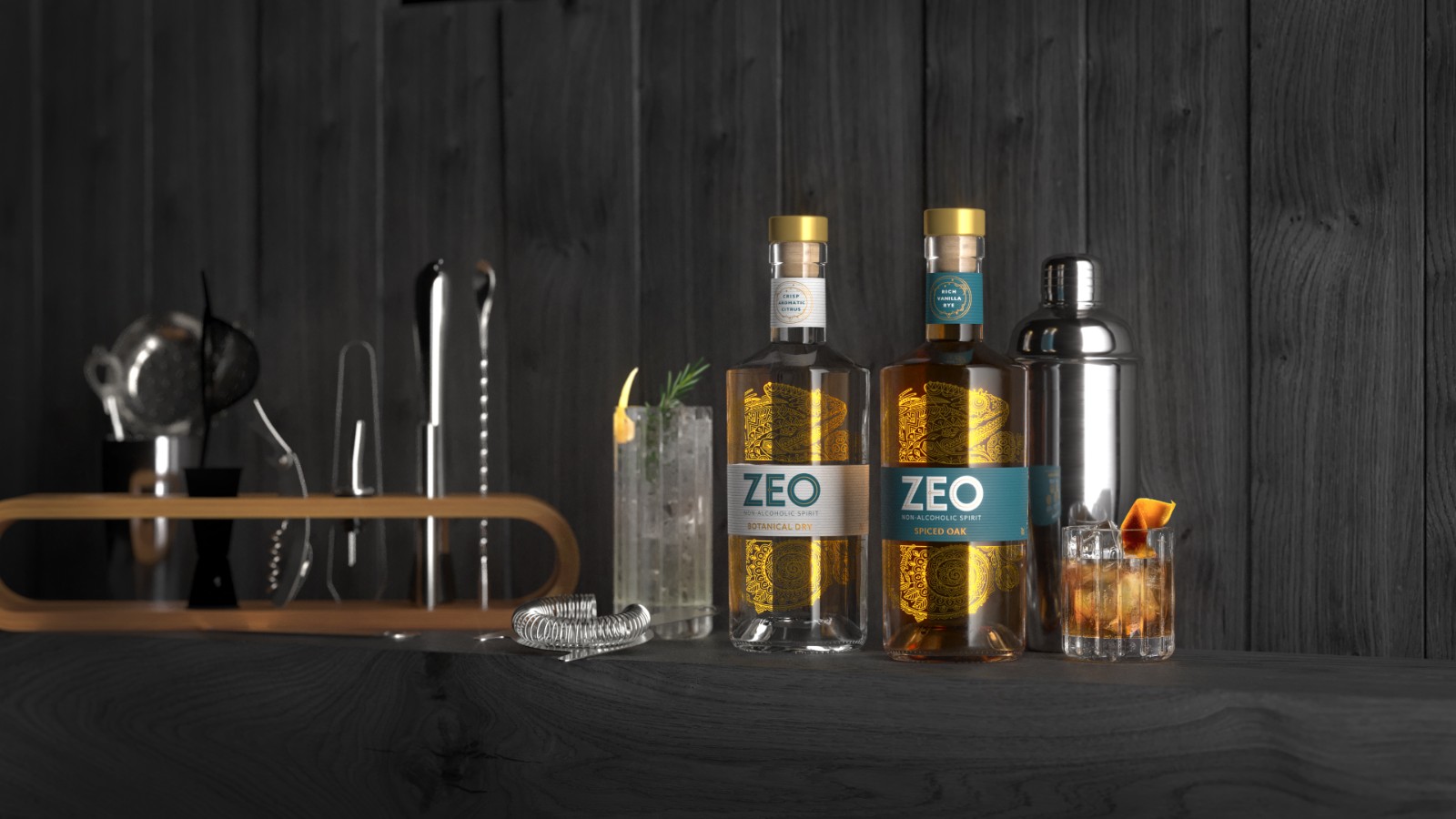 圍繞標簽纏繞的變色龍的復(fù)雜圖案插圖傳達了ZEO的五步蒸餾過程的精湛工藝,技巧感和關(guān)注細節(jié)。隱藏在生產(chǎn)線中的是對各個植物藥的描繪,這進一步增強了ZEO飲料體驗的耐人尋味的,多層的感覺。這種高度詳細的表達方式隨后被一個整潔,整潔的文字標記所抵消,其個性化的排版設(shè)計簡單明了,給該品牌帶來了現(xiàn)代感,同時使其可以在架子上和酒吧中脫穎而出。